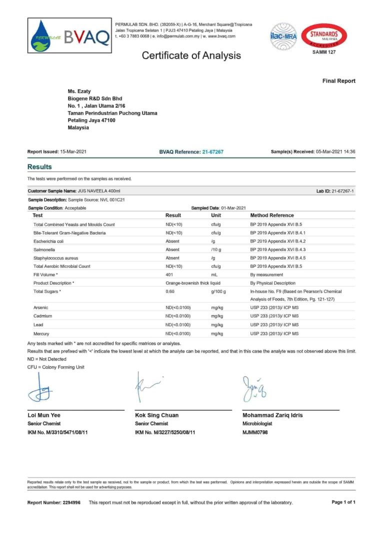 Ambil Jus Navella 30 minit SELEPAS MAKAN. Pada pengambilan 2 minggu awal, amalkan sehari sekali sahaja iaitu pada waktu pagi
